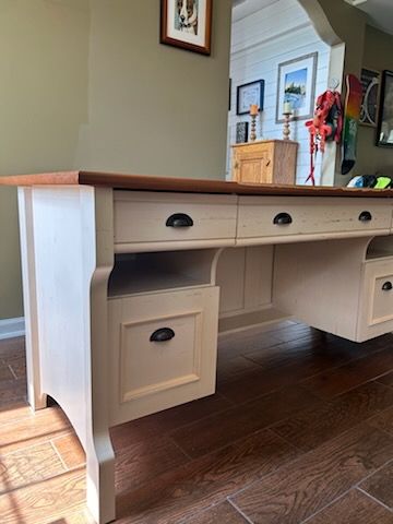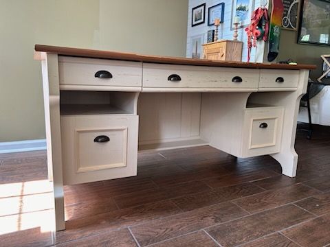 Large and in charge. Currently in my basement, used previously as my “shipping station”. You’ll need to take this apart to get it up and out. I can help with that :-) Otherwise, this will be trashed.